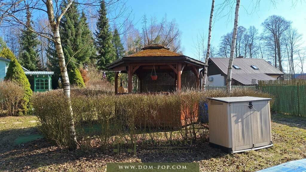 kwiatami, znajdują się na nim także zadaszona altana ogrodowa,