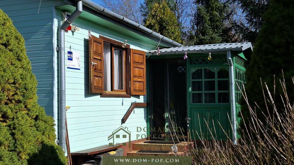 Na terenie posadowiony jest drewniany domek letniskowy o powierzchni